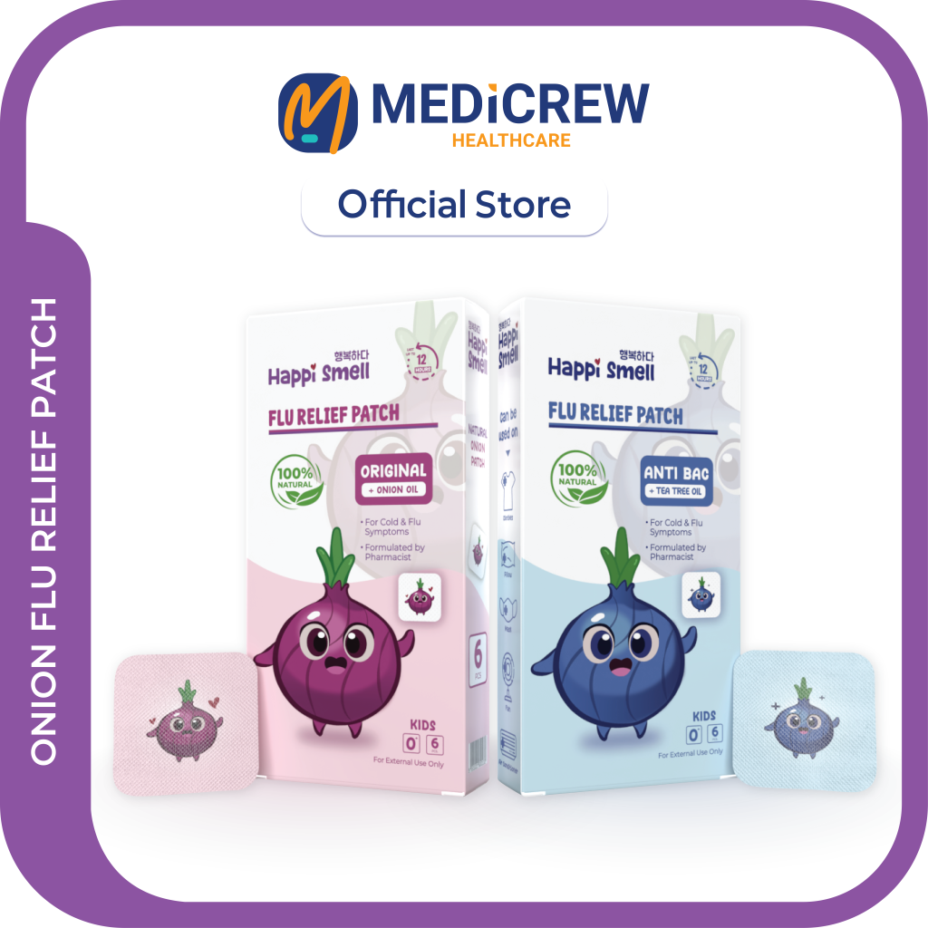 Happi Smell Onion Flu Relief Patch is an essential oil patch that is intended to relieve blocked nose and other upper respiratory symptoms caused by allergic rhinitis, sinusitis and common cold. It comes in Original & Anti Bac formula. The Anti Bac version has Tea Tree oil added to reduce bacterial growth, especially useful for anyone with yellow mucus which can be a sign of bacterial infection.